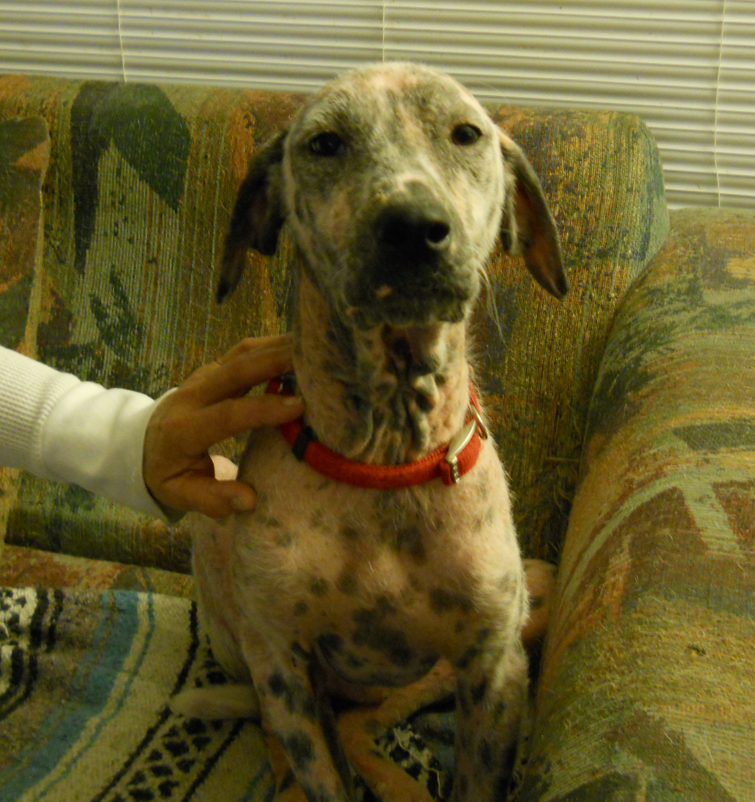 Bonnie got over terrible mange, but had ectropian, which required expensive eye surgery. With donations, she gained a full recovery.